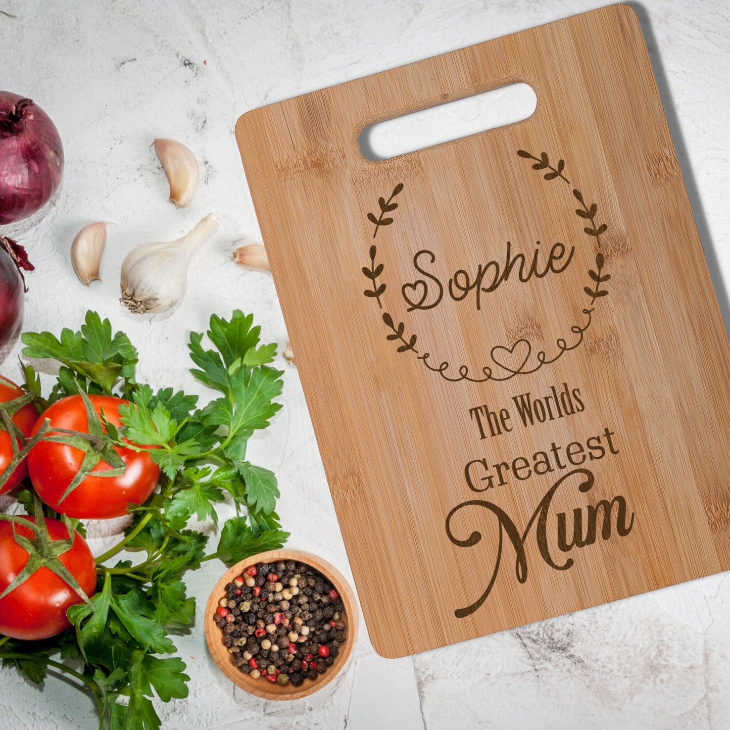 Worlds Greatest Mother Real Bamboo Chopping Board Perfect Mother's Day Gift for the Kitchen 30 x 23 cm